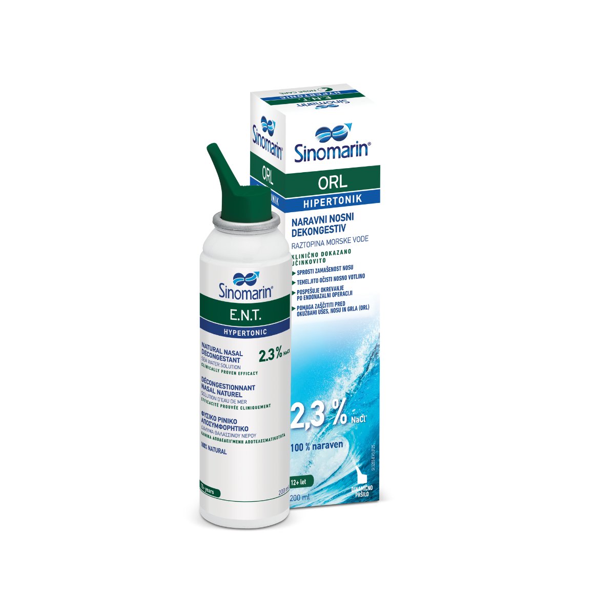 Sinomarin® ORL je medicinski pripomoček, ki je narejen za navlažitev nosne sluznice, kadar se iz nje izloča gosta in/ali gnojna sluz, ter za oskrbo po endonazalni operaciji. Temeljito očisti nosno votlino, pripomore k obnovi sluznice in preprečuje pooperativne okužbe in zaplete.