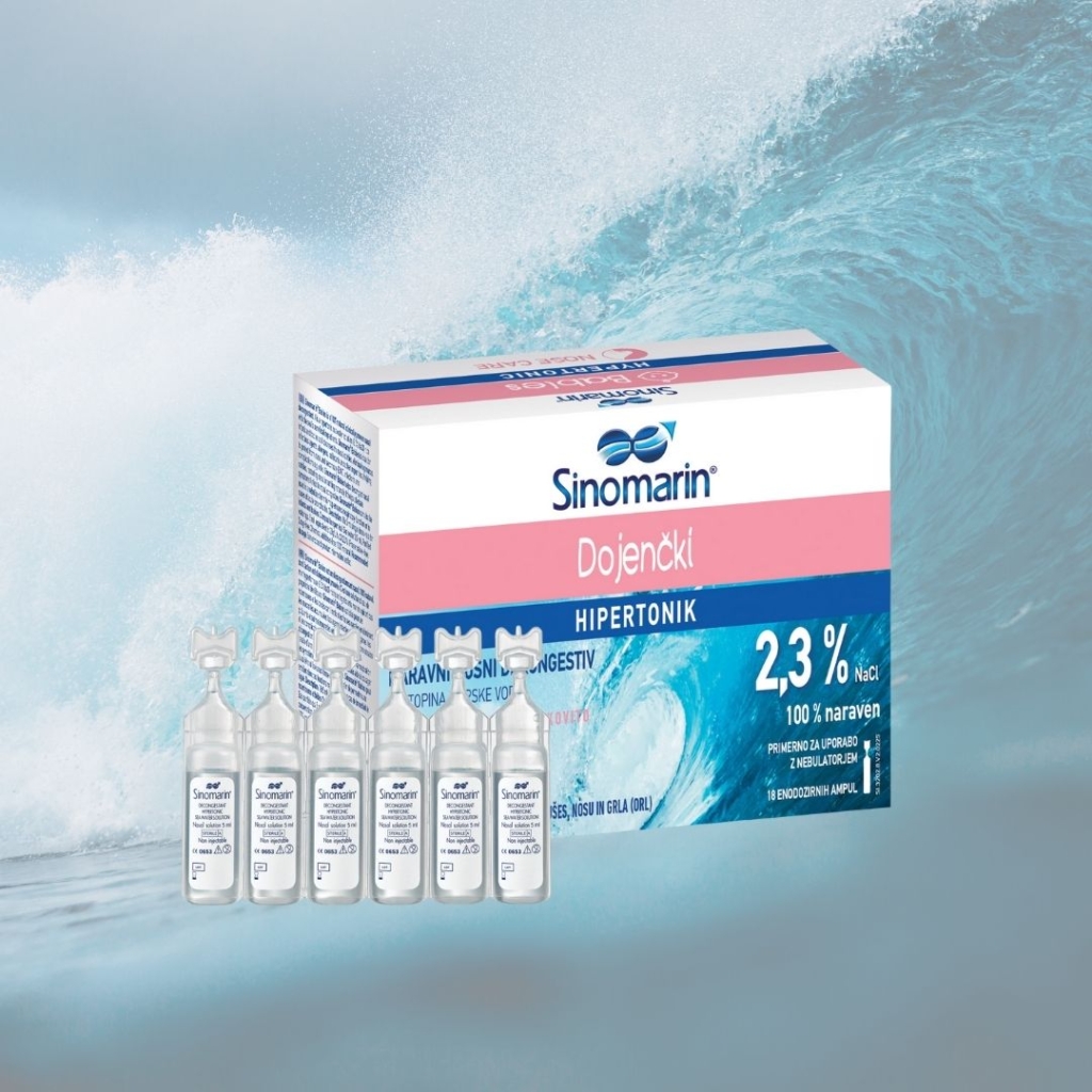 Ampule Sinomarin® HIPERTONIK DOJENČKI, hipertonična raztopina v ampulah se lahko uporablja pri dojenčkih in novorojenčkih od rojstva dalje. Izdelek je primeren in varen za uporabo kapljično, kot tudi s katerimkoli inhalatorjem oz. nebulatorjem na trgu.